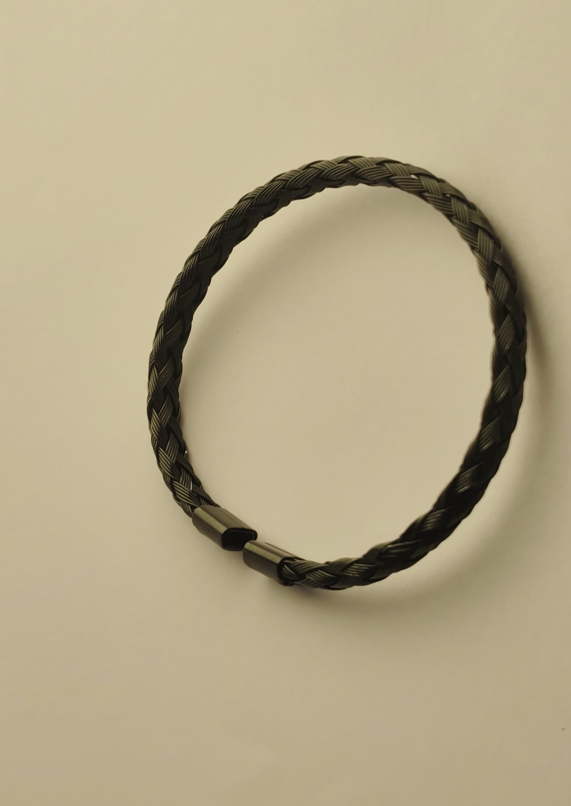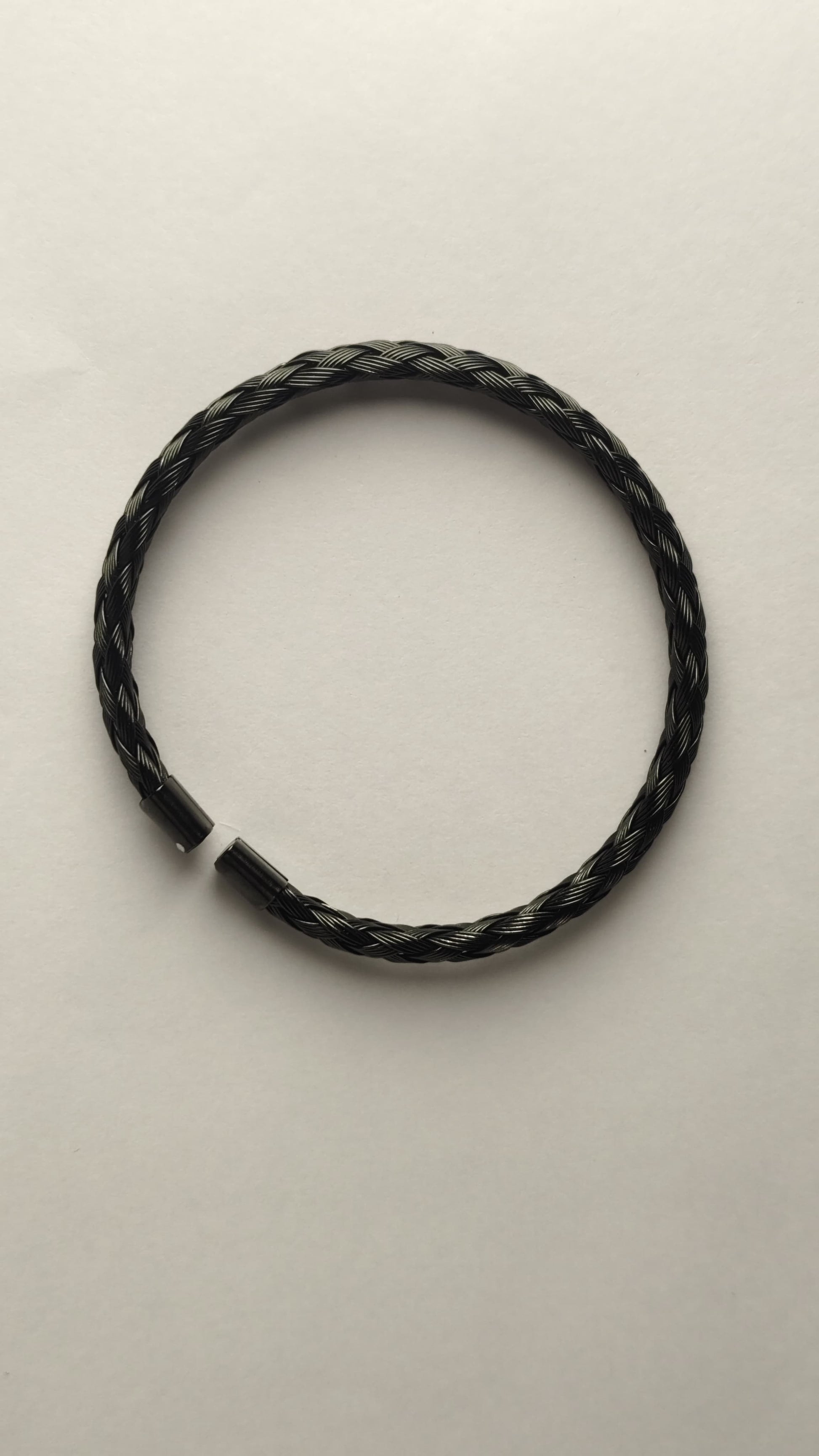 : black steel bracelet, braided bracelet for men, minimalist cuff bracelet, open cuff wristband, men’s fashion accessories